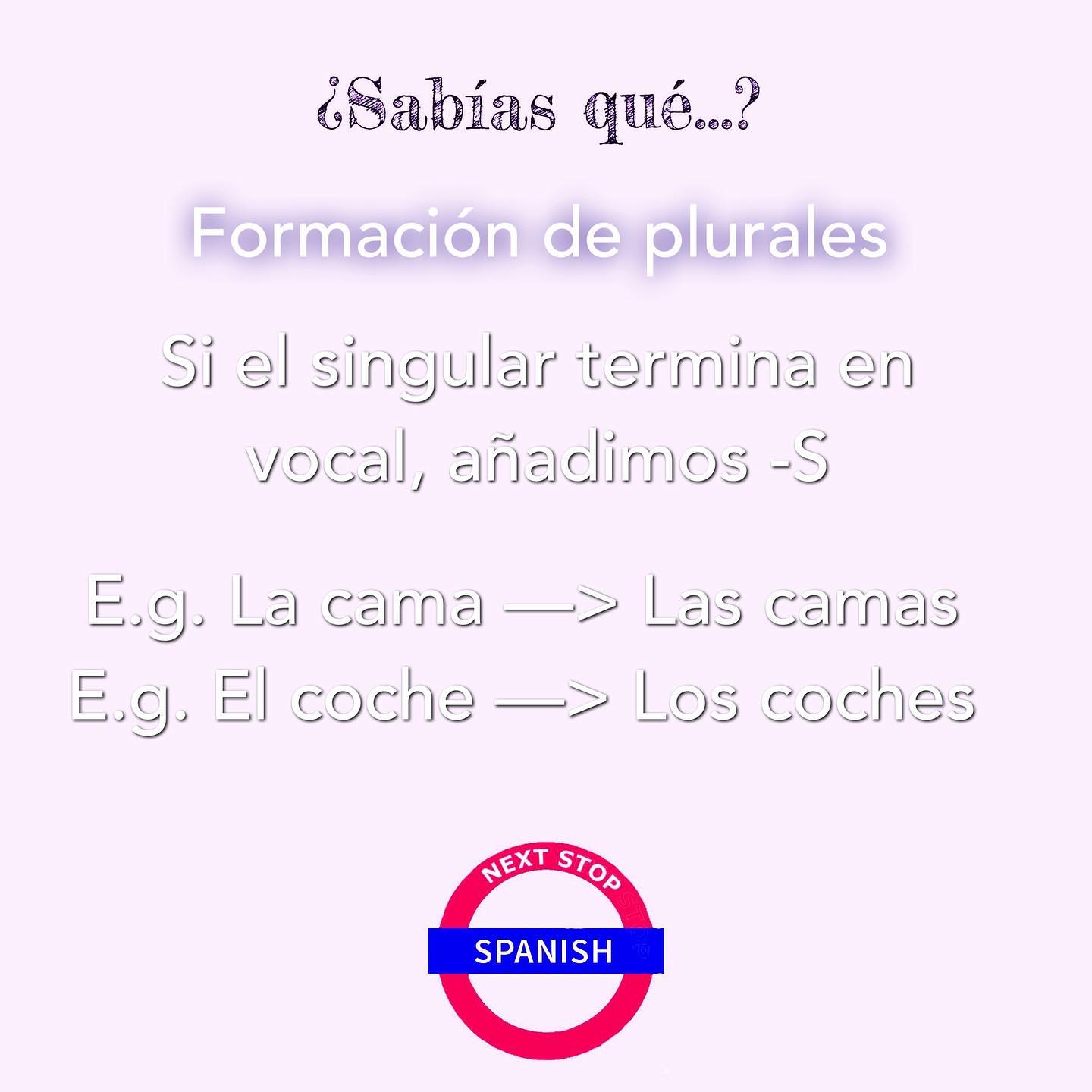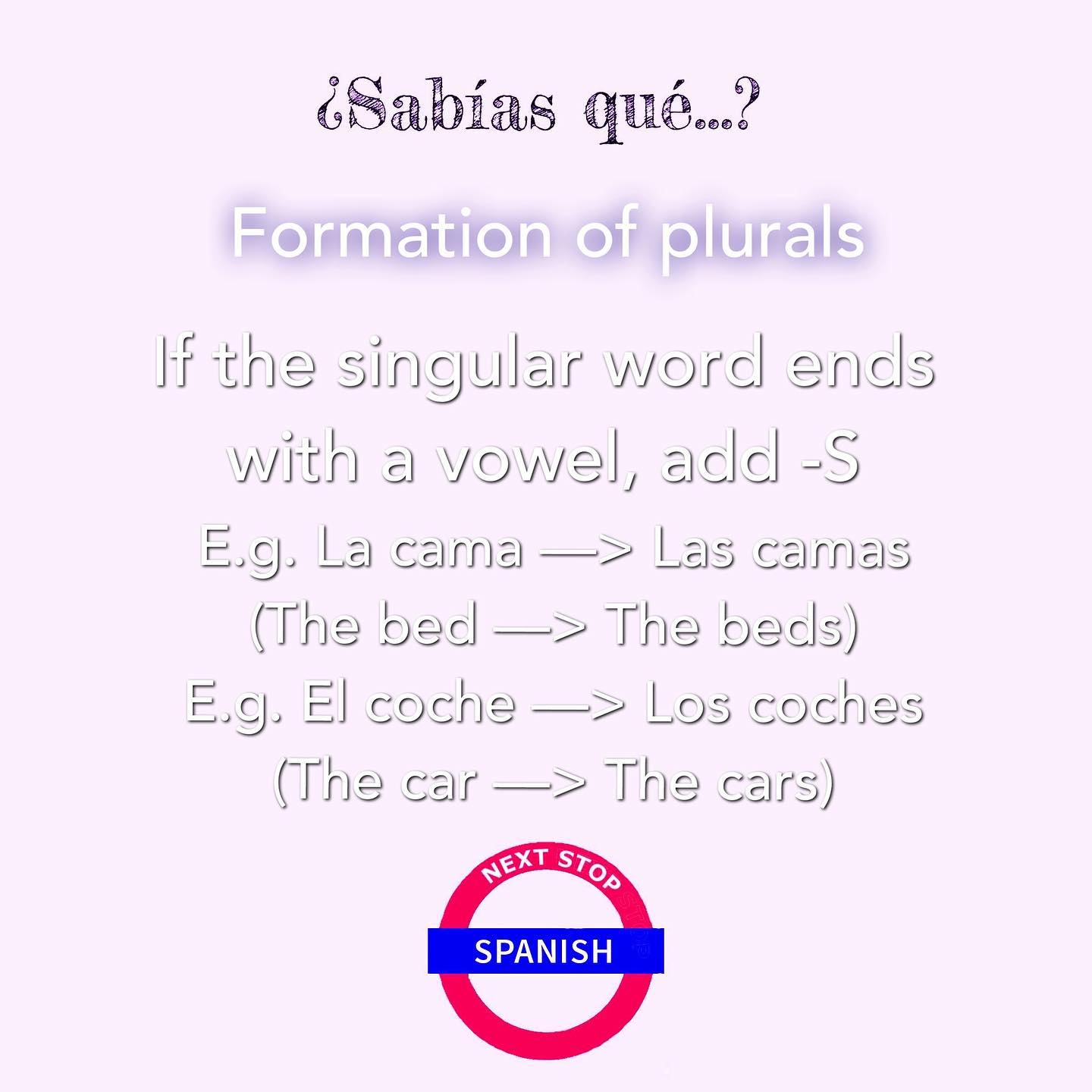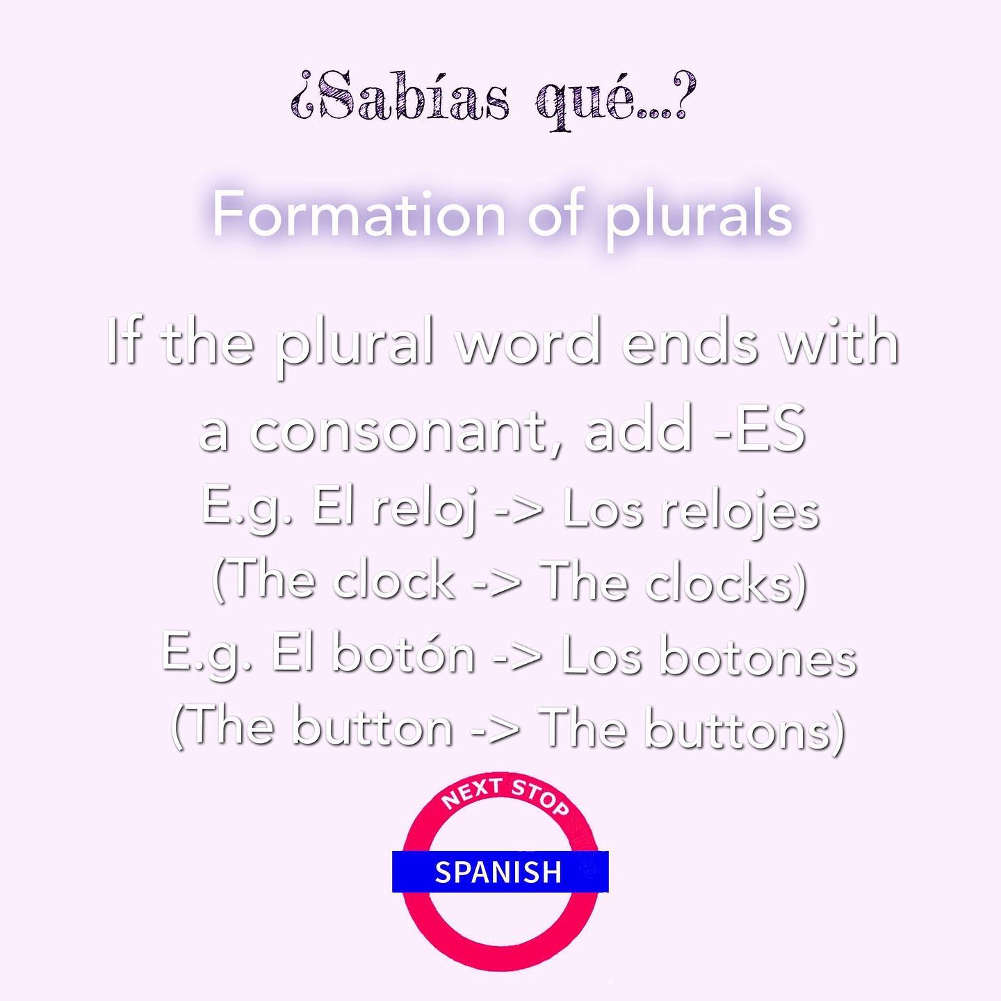 If the singular word ends with the vowels “U” or “I” and they’re accentuated, then its plural will have “-ES” at the end.