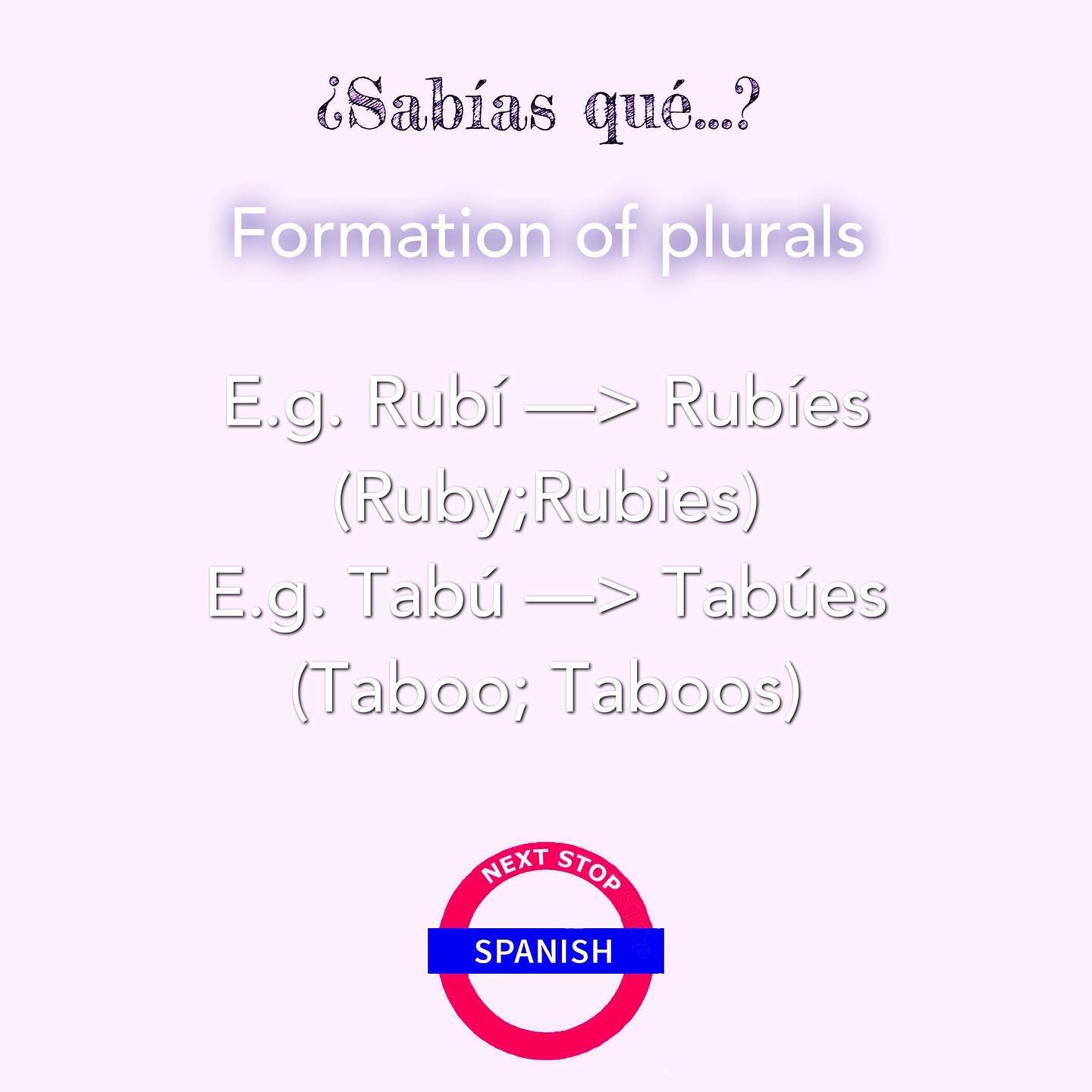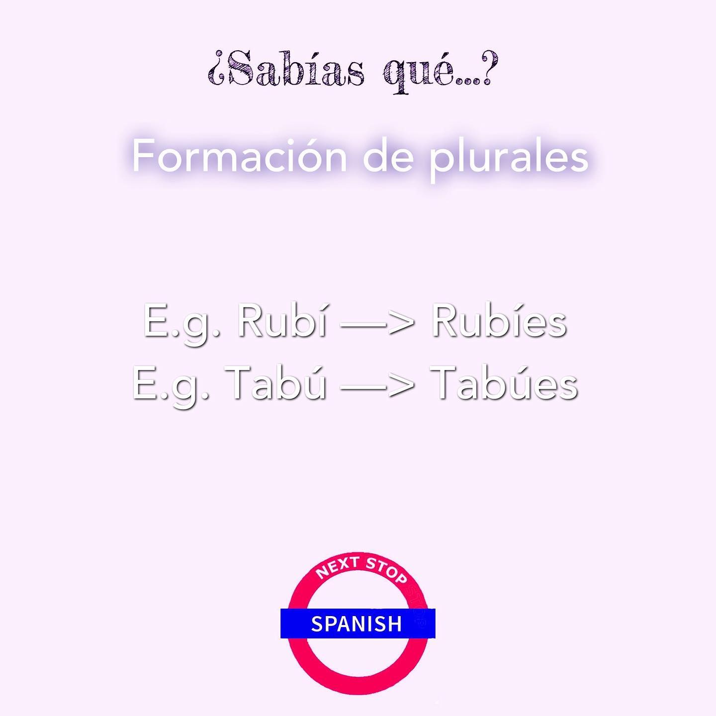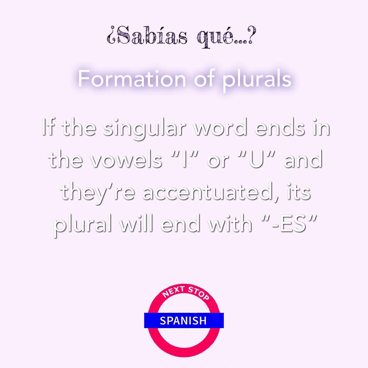 If the singular word ends with the vowels “U” or “I” and they’re accentuated, then its plural will have “-ES” at the end.