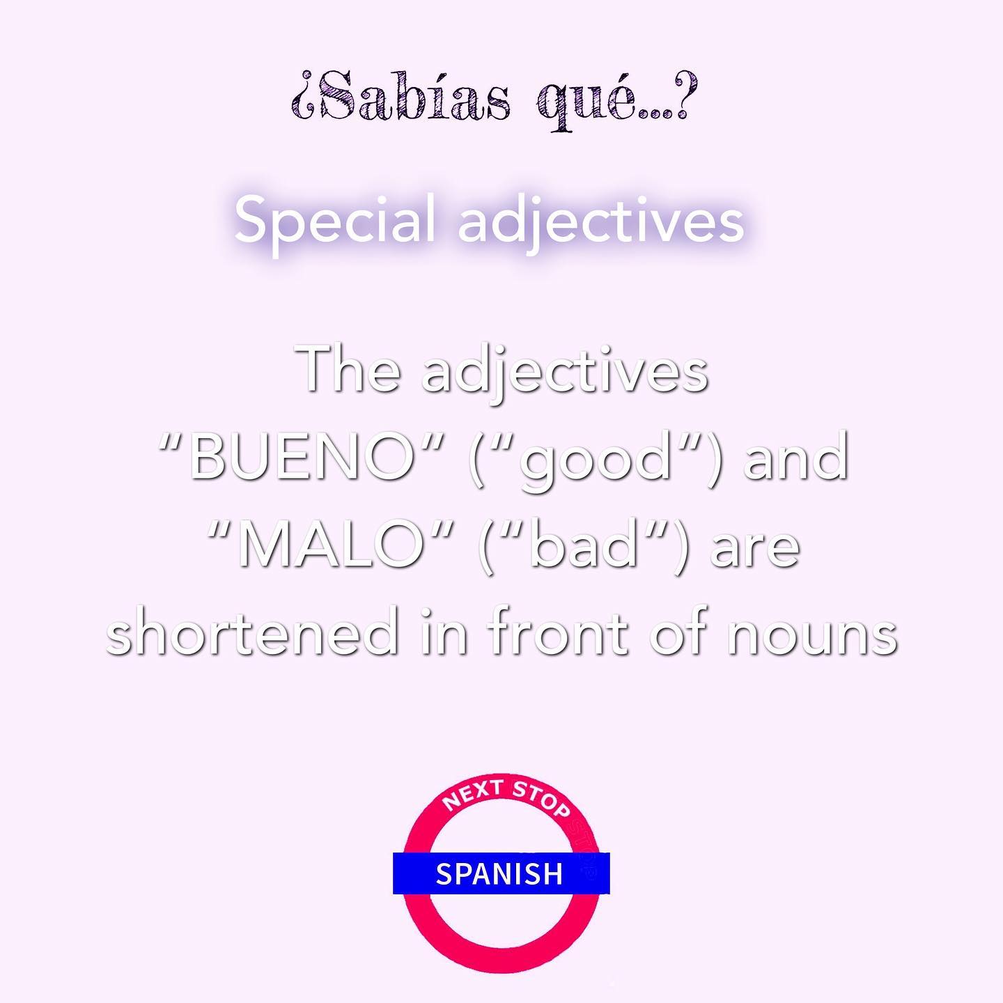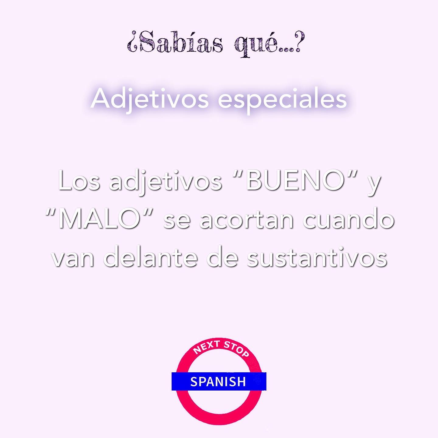 The adjectives “Bueno” and “malo” which mean “good” and “bad”, respectively, are shortened when they go in front of a noun.